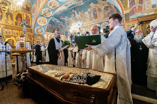 В состоявшемся затем заупокойном богослужении участвовали: митрополит Воскресенский Григорий, управляющий делами Московской Патриархии; митрополит Каширский Феогност, председатель Синодального отдела по монастырям и монашеству; митрополит Владимирский и Суздальский Никандр, председатель Финансово-хозяйственного управления Московского Патриархата; митрополит Орловский и Болховский Тихон; митрополит Саранский и Мордовский Зиновий; митрополит Волгоградский и Камышинский Феодор; епископ Ливенский и Малоархангельский Нектарий; епископ Можайский Иосиф, наместник Оптиной пустыни; епископ Раменский Алексий, личный секретарь Святейшего Патриарха Кирилла; насельники Оптиной пустыни в священном сане, духовенство Русской Православной Церкви.