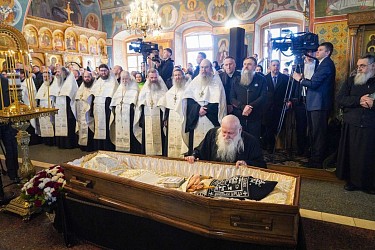 Заупокойное богослужение в Оптиной пустыни посетили: председатель Комитета Совета Федерации Федерального Собрания Российской Федерации по бюджету и финансовым рынкам А.Д. Артамонов; губернатор г. Санкт-Петербурга А.Д. Беглов; губернатор Калужской области В.В. Шапша; губернатор Орловской области А.Е. Клычков; председатель Арбитражного суда Центрального округа А.В. Орлов; председатель Законодательного Собрания Калужской области Г.С. Новосельцев; главный федеральный инспектор по Калужской области Д.М. Колозин; заместитель главы Всемирного русского народного собора С.Ю Рудов; председатель Наблюдательного совета Общероссийского общественного движения «Россия Православная» М.М. Иванов.