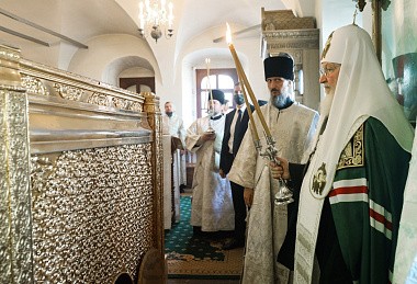 18 апреля 2022 года, в понедельник Страстной седмицы, в Малом соборе Донского ставропигиального монастыря г. Москвы Святейший Патриарх Московский и всея Руси Кирилл совершил молебен на начало чина мироварения.