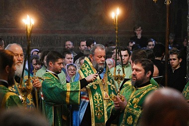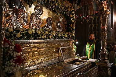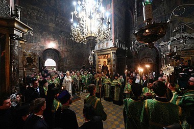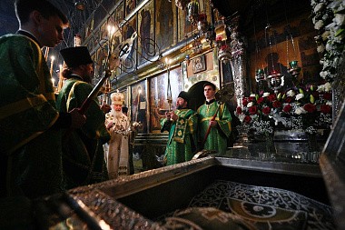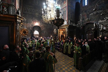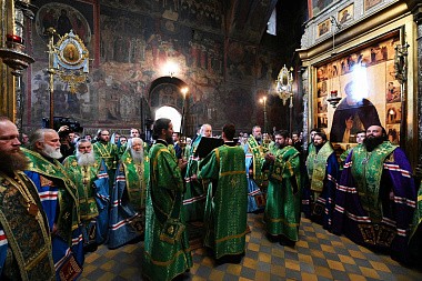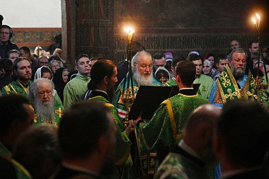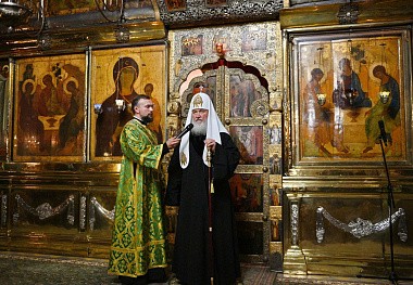 В канун дня преставления преподобного Сергия, игумена Радонежского, всея России чудотворца, Святейший Патриарх Московский и всея Руси Кирилл совершил всенощное бдение в Троицком соборе Свято-Троицкой Сергиевой лавры.