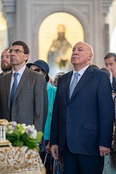 Патриаршее богослужение посетили: полномочный представитель Президента Российской Федерации в Центральном федеральном округе И.О. Щеголев; государственный секретарь Союзного государства России и Белоруссии Д.Ф. Мезенцев; заместитель председателя Правительства Республики Алтай, полномочный представитель Республики Алтай в г. Москве И.П. Лозовая; заместитель государственного секретаря Союзного государства России и Белоруссии Е.Л. Богдан; руководитель Департамента национальной политики и межрегиональных связей г. Москвы В.И. Сучков; советник Постоянного Комитета Союзного государства России и Белоруссии С.И. Шереметьев; председатель Федеральной национально-культурной автономии «Белорусы России», академик Российской академии образования С.Л. Кандыбович; руководитель ювелирно-художественной мастерской «Апостол» И.С. Харьков.