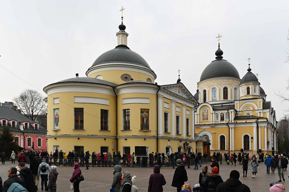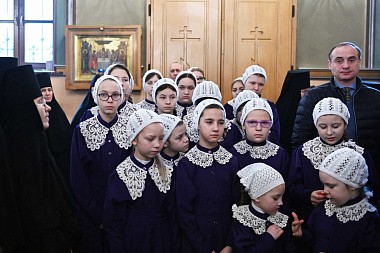 Среди молившихся в храме были настоятельница Покровского ставропигиального монастыря игумения Феофания (Мискина), насельницы Покровской обители и воспитанницы монастырского приюта для девочек.