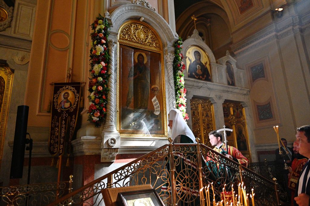 Святейший Патриарх Кирилл совершил славление у чтимой чудотворной иконы Пророка, Предтечи и Крестителя Господня Иоанна с частицей мощей.
