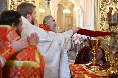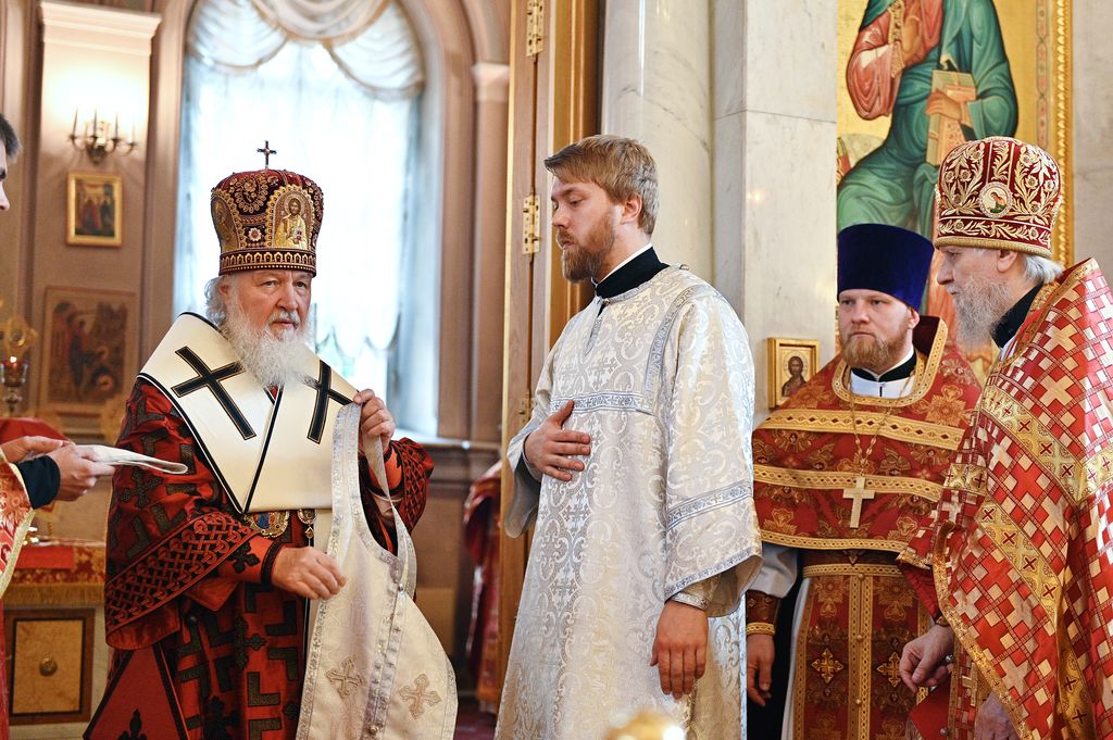 За Литургией Святейший Патриарх Кирилл совершил иерейскую хиротонию диакона Павла Патокина, студента магистратуры Сретенской духовной семинарии.