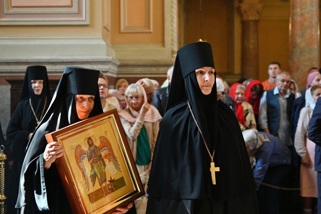 В храме молились заместитель председателя Синодального отдела по монастырям и монашеству, настоятельница Зачатьевского ставропигиального женского монастыря игумения Иулиания (Каледа), настоятельница Иоанно-Предтеченского монастыря игумения Елисавета (Никишкина), настоятельница Богородице-Рождественского ставропигиального женского монастыря игумения Викторина (Перминова), насельницы обители, многочисленные прихожане и паломники.