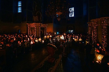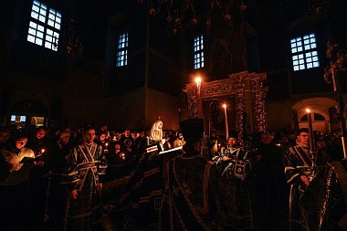 Вечером 5 марта 2020 года, в четверг первой седмицы Великого поста, Святейший Патриарх Московский и всея Руси Кирилл совершил великое повечерие с чтением Великого покаянного канона прп. Андрея Критского в Донском ставропигиальном мужском монастыре.
