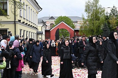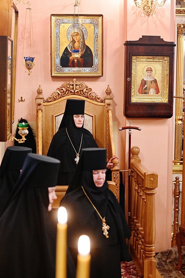 Среди молившихся в храме были настоятельница Покровского ставропигиального монастыря игумения Феофания (Мискина), настоятельница Патриаршего подворья Пюхтицкого Успенского ставропигиального женского монастыря в г. Москве игумения Филарета (Смирнова), насельницы Покровской обители и воспитанницы монастырского приюта для девочек.