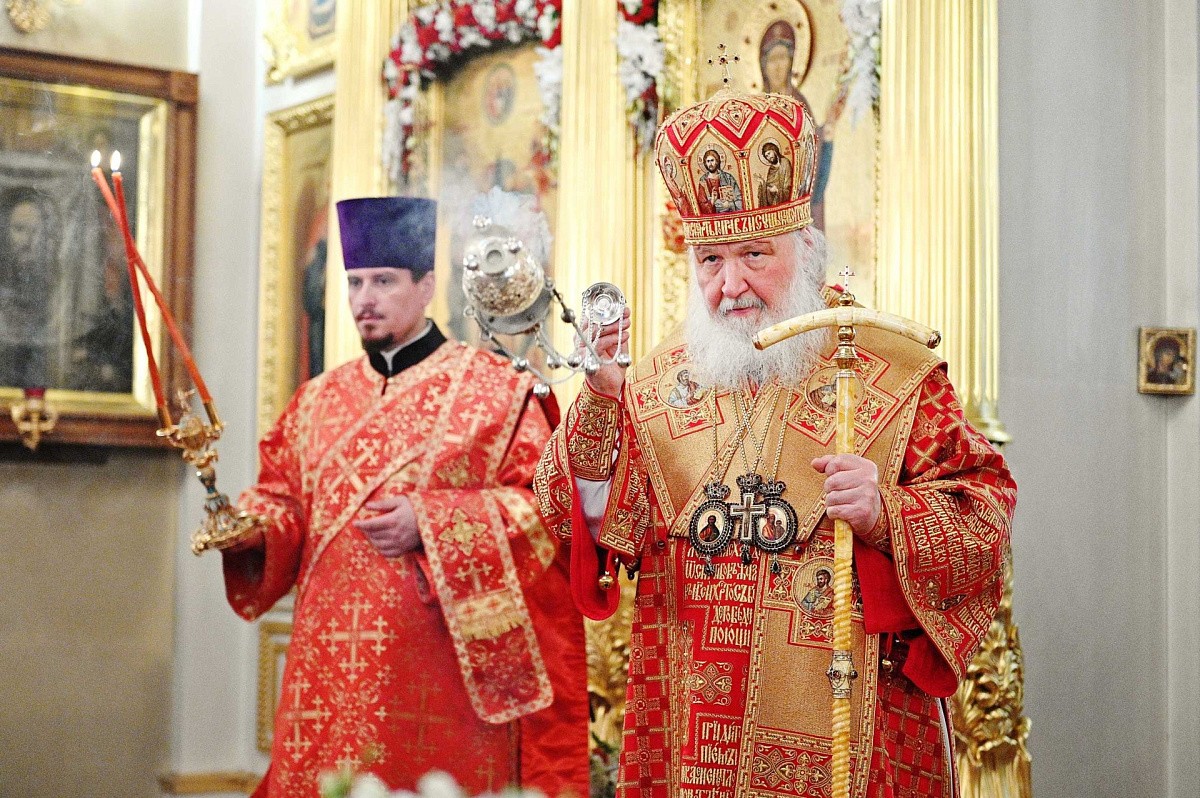 Затем Предстоятель Русской Православной Церкви возглавил Божественную литургию в храме Воскресения Словущего.