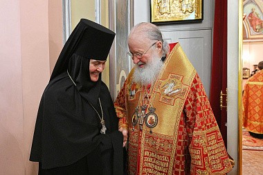 «Хотел бы сердечно поблагодарить Вас, матушка игумения Феофания, за труды, которые Вы вместе с сестрами несете в этой святой обители. Всегда с особым чувством я совершаю здесь Божественную литургию, радуюсь видеть и новых послушниц. Дай Бог, чтобы укреплялась монашеская жизнь, чтобы тропа паломническая никогда не зарастала к великой святыне Церкви нашей – гробу с мощами святой праведной Матроны Московской – и чтобы ее молитвами и ходатайствами пред лицом Божиим Господь хранил всех нас. Аминь», – пожелал в завершение Святейший Владыка.