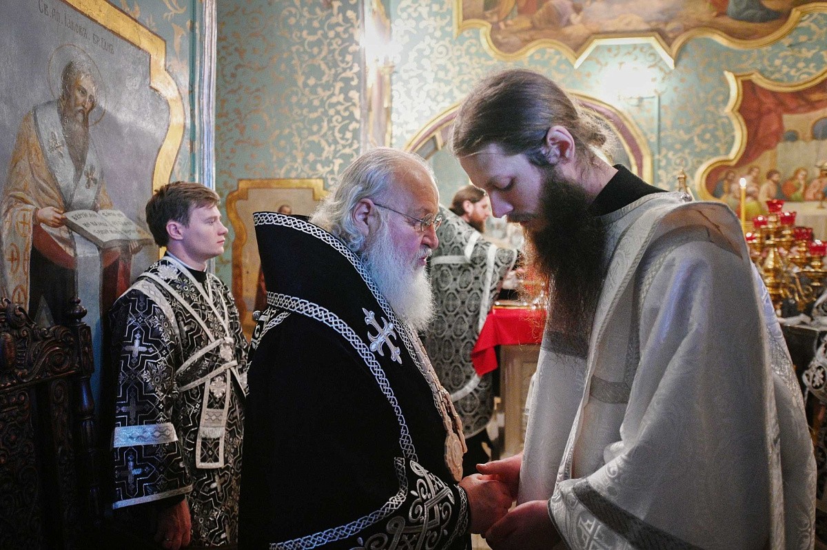За Литургией Святейший Патриарх Кирилл рукоположил насельника обители монаха Прохора (Злобина) в сан иеродиакона.