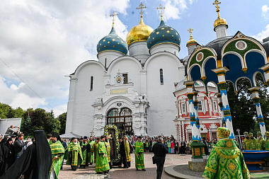 18 июля 2019 года, в праздник обретения честных мощей преподобного Сергия, игумена Радонежского, Святейший Патриарх Московский и всея Руси Кирилл возглавил Божественную литургию в Успенском соборе Свято-Троицкой Сергиевой лавры.