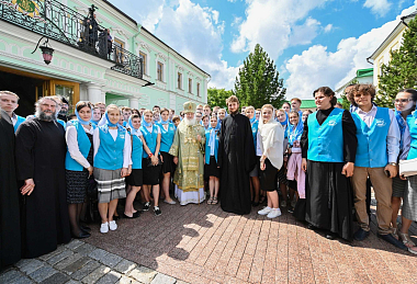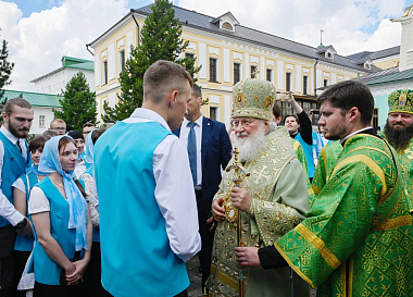 В числе молившихся в храме были игумении женских монастырей, участники православного молодежного форума «ДоброЛето-2019», которой проходит в эти дни на Благовещенском поле Сергиева Посада, делегаты ХII Международного съезда «Содружество православной молодежи», многочисленные паломники.