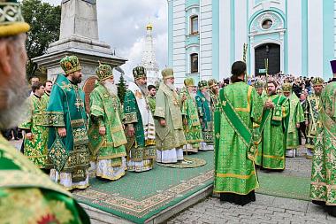 По окончании богослужений Святейший Патриарх Кирилл, Блаженнейший митрополит Онуфрий, члены Священного Синода и все иерархи, прибывшие на торжества в Лавру, совершили молебен на Соборной площади перед чтимой иконой преподобного Сергия Радонежского.