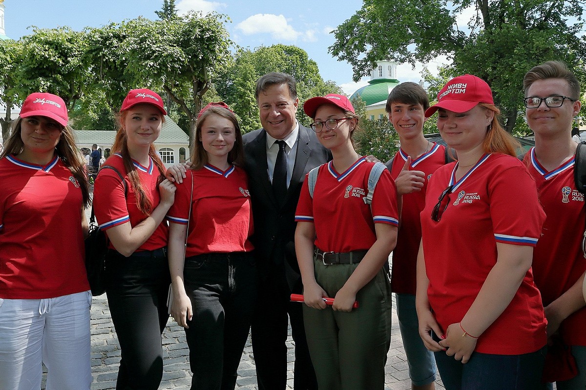 На территории обители главу государства Панама приветствовали сергиевопосадские спортивные волонтеры, сопровождающие гостей и участников Чемпионата мира по футболу FIFA 2018 во время их пребывания в Лавре и Сергиевом Посаде.