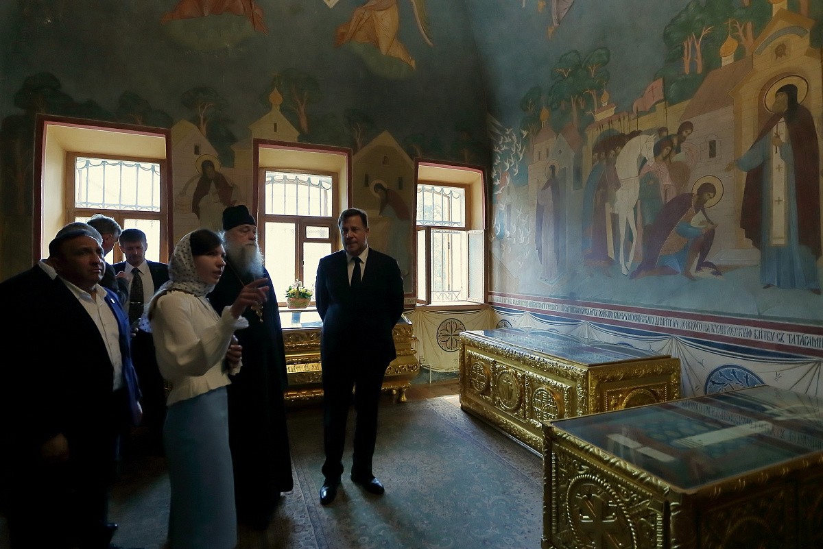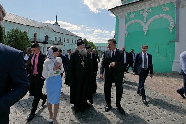 Для Президента и сопровождавшей его делегации была проведена экскурсия по Лавре и предложена монастырская трапеза.