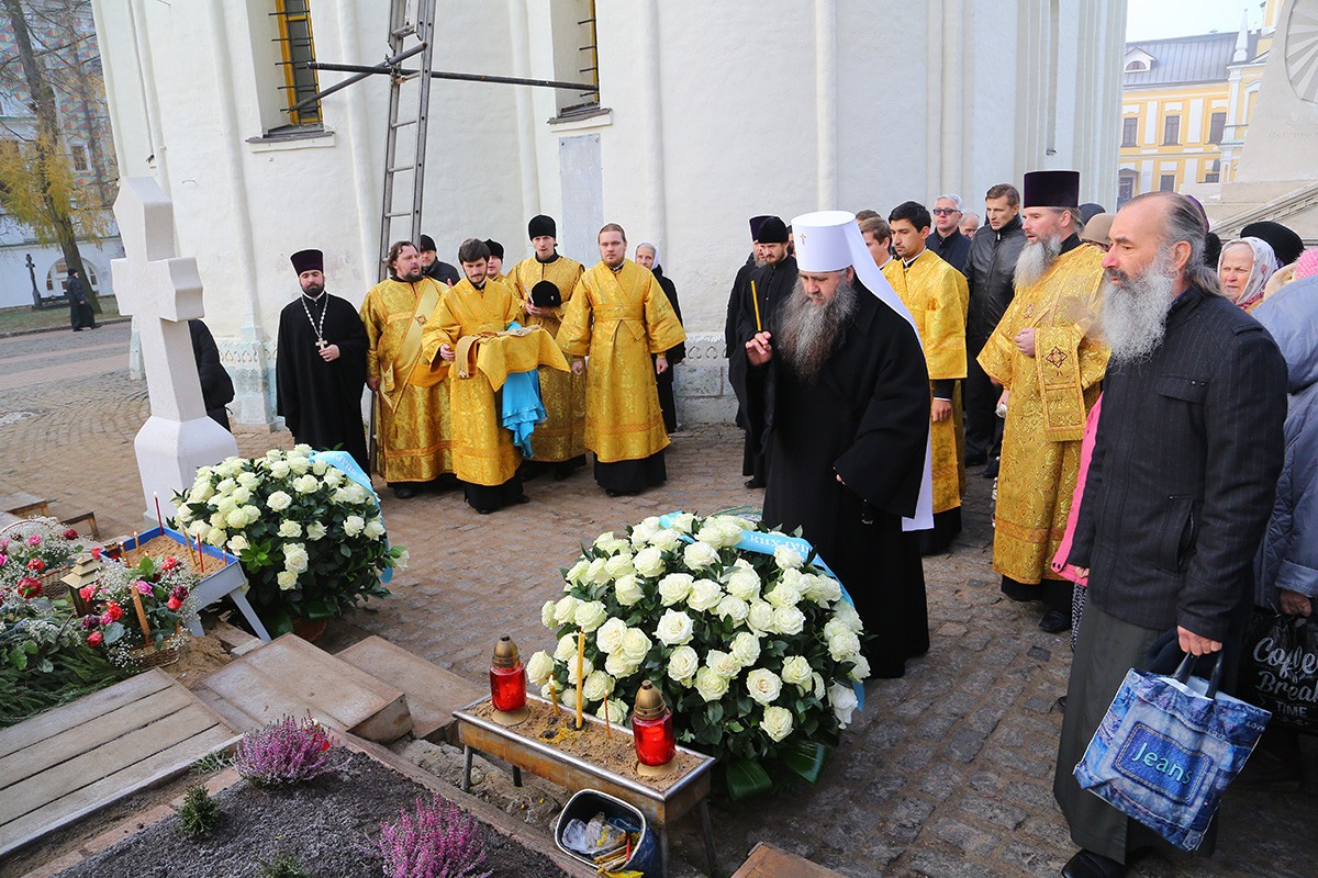 По окончании Литургии митрополит Георгий побывал на могиле старейшего насельника Лавры архимандрита Наума (Байбородина), преставившегося ко Господу 13 октября и погребенного за алтарем Свято-Духовского храма.