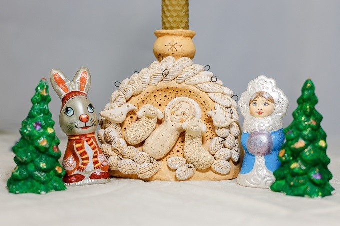 Участники обучающих встреч научатся вручную изготавливать елочные игрушки из ткани на пенопластовой форме, тарелки и чашки с символами зимы, расписывать гипсовые фигурки, деревянные изделия и новогодние шары в технике двойного мазка, лепить из глины снеговиков, овец и ангелов, вышивать, валять игрушки из шерсти и даже создавать мозаику из витражного стекла.