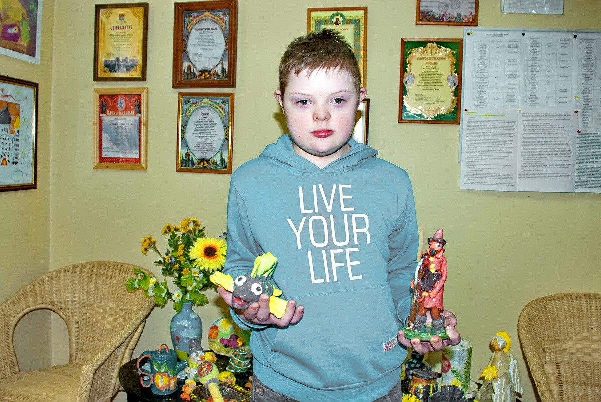 Воспитанники студии в качестве выставочных экспонатов представили на конкурс керамические поделки. Особое место среди работ, заявленных в номинации «Декоративно-прикладное искусство», занимают глиняные фигурки ребят с врожденными тяжелыми недугами. Несмотря на нездоровье, они с радостью занимаются творчеством: лепят, рисуют, создают мультфильмы. «Дети Солнца» для детского коллектива являются действительно солнышками, которые согревают всех, кто находится рядом.