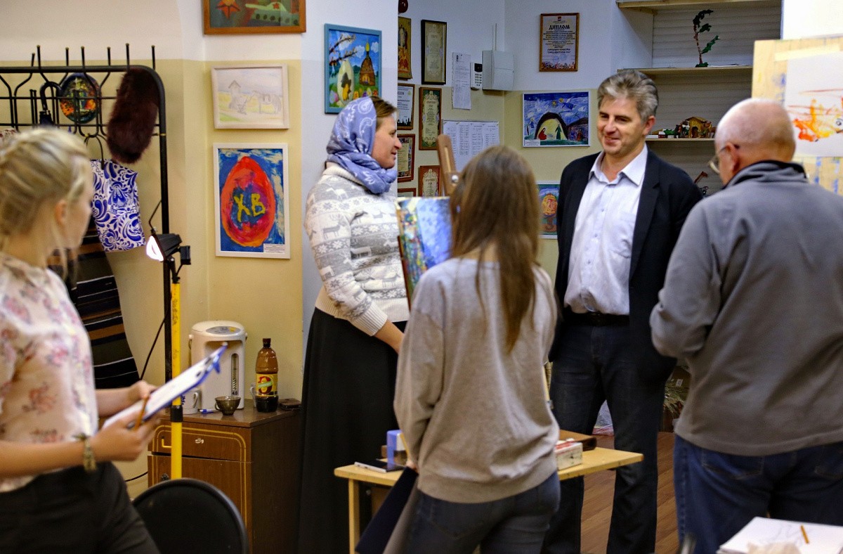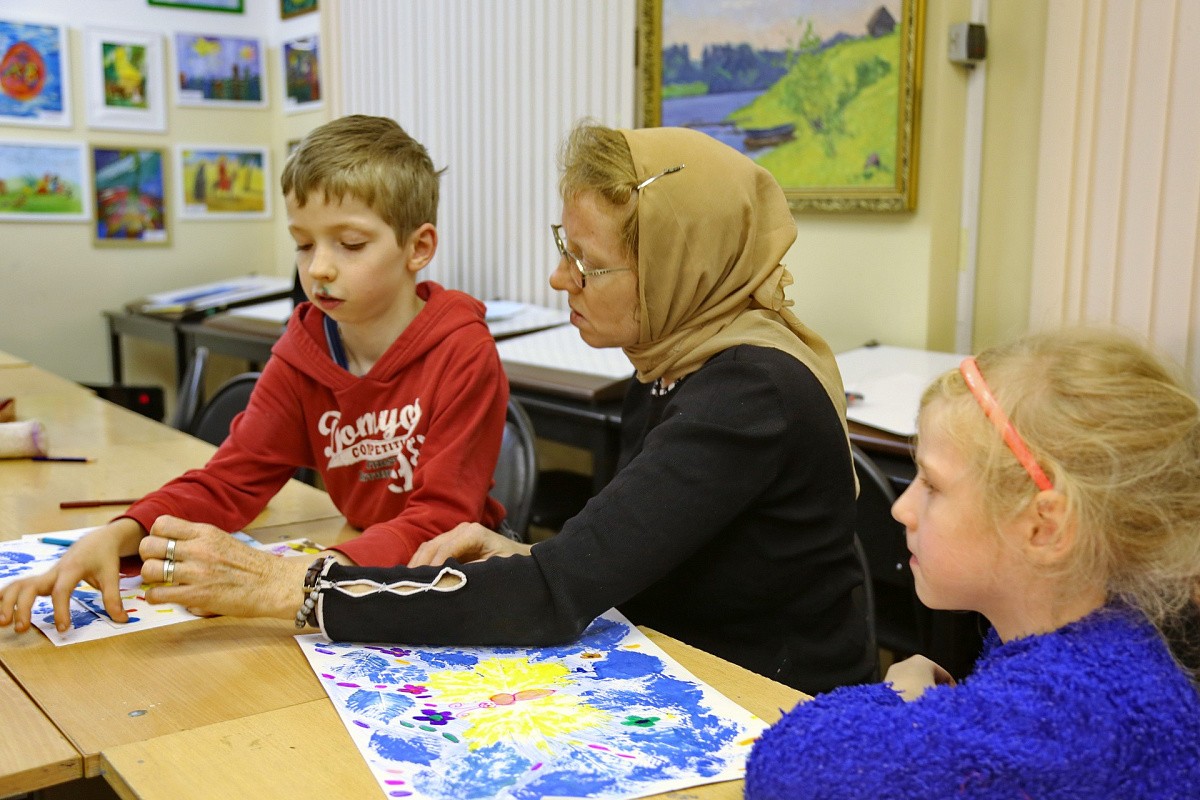 Рождение каждого детского рисунка – не просто движение кисти или карандаша: это невидимое глазу движение его души, которую Господь наградил бесценным даром творчества. Кажется, еще секунду назад чистый бумажный лист бережно хранил свою белоснежную важность, но вот уже вместе с первым робким штрихом, первым прозрачным мазком он вдруг открывает перед нами новый мир, ключик от которого находится в руках юного художника. Но самое удивительное, что хрупкий момент преображения подвластен ребенку. Снова и снова, от занятия к занятию воспитанники творческой студии «Сфера», ведомые опытным наставником, продвигаются всё дальше, опытно осваивая секреты живописного мастерства.