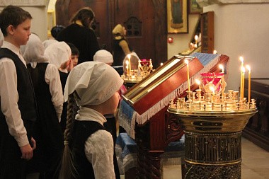 11 декабря 2015 года, в день обретения мощей преподобноисповедника Сергия (Сребрянского) и день памяти священномученика Серафима (Чичагова), учащиеся Елизаветинской гимназии ставропигиального женского монастыря Марфо-Мариинская обитель милосердия посетили Божественную литургию.