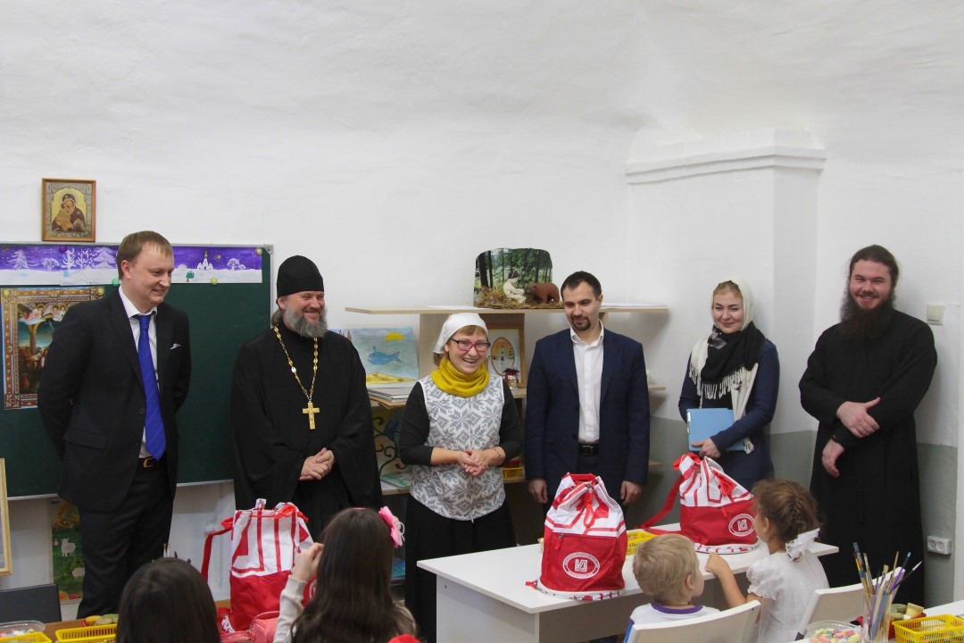 29 декабря 2015 года воспитанникам Воскресной школы Донского ставропигиального мужского монастыря сотрудники Московского индустриального банка вручили подарки.