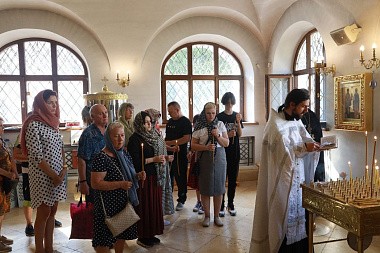 В заключение дня состоялся визит в Зачатьевский женский монастырь: помолившись перед иконой Божией Матери «Милостивая» и поклонившись частицам Животворящего Креста и Гроба Господня, Поясу Пресвятой Богородицы, мощам святого Лазаря Четверодневного и святых праведных Иоакима и Анны в главном соборе обители, посвященном Рождеству Пресвятой Богородицы, паломники вознесли молитву о погибших и усопших. Кроме того, богомольцам была предоставлена уникальная возможность посетить пещерный храм Успения Пресвятой Богородицы, подземную Неопалимовскую церковь и монастырскую костницу.