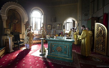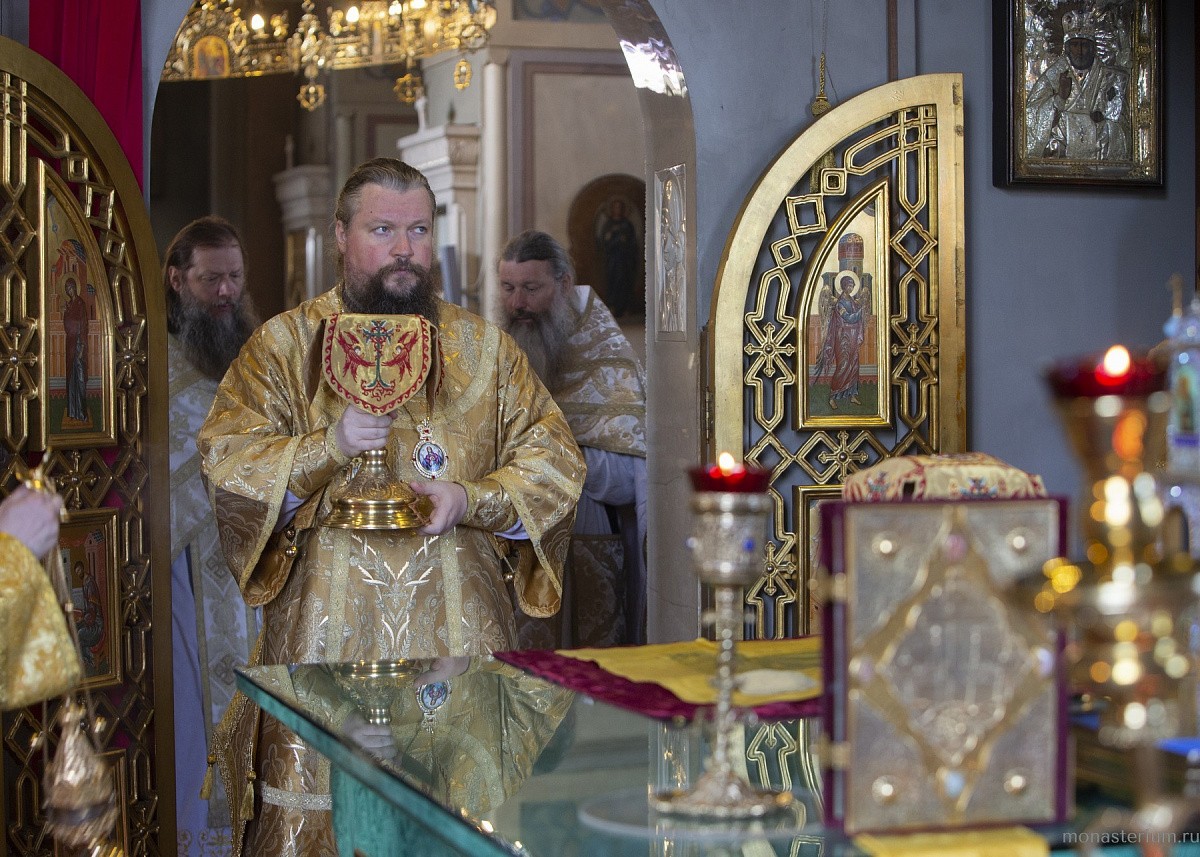 Его Преосвященству сослужили старший священник и духовник монастыря протоиерей Артемий Владимиров, а также клирик обители протоиерей Сергий Теплов.