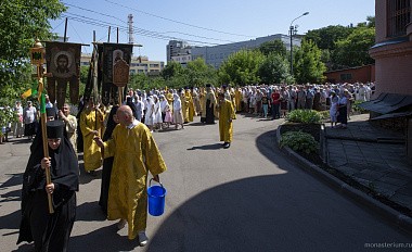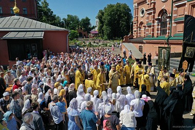 По окончании Литургии прошел крестный ход по чину престольного праздника, в котором приняли участие владыка Дионисий, настоятельница Алексеевского монастыря игумения Ксения с сестрами, духовенство обители, прихожане и паломники.