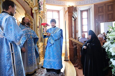 Накануне, 27 августа было отслужено всенощное бдение с выносом Плащаницы Божией Матери. Во время полиелея священники торжественно изнесли драгоценную Плащаницу из алтаря в центр храма и возложили ее на украшенный цветами одр для поклонения верующих. Всю ночь перед Плащаницей читалась Неусыпаемая Псалтирь.