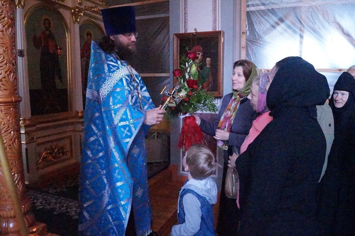 По традиции после Божественной литургии, вынося из алтаря напрестольный крест для благоговейного лобызания верующими, священник Георгий принимал сугубые пожелания от благодарных сестер, прихожан и духовных чад.