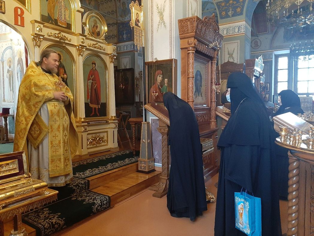 После отпуста старший священник монастыря иеромонах Адриан обратился к сестрам с назидательным словом по случаю отмечаемого события. Он подчеркнул, что исповеднический подвиг чтимых ныне святых начался не в момент арестов, судов, ссылок и казней – это была некая кульминационная точка их подвига, но само исповедничество началось задолго до явных гонений – в то время когда христиане продолжали хранить верность заповедям Божиим в период массового отступничества. Причиной такого отступления стала неукорененность многих номинальных христиан в вере, поверхностное восприятие религии без углубления путем добродетели в истины христианства, отсутствие живого диалога с Богом, подмененного внешней обрядовостью. Такие люди в период испытания поколебались, не только утратив собственную связь с Церковью, но и зачастую обратившись в ее активных гонителей. Поэтому так важно нам углубляться в познание вероучительных истин, хранить связь с Богом, не только эмоциональную, но всматриваясь в истины, открывающиеся в Евангелии, взирая на события, происходящие вокруг нас не просто через закон, а через живое восприятие, в котором и происходит диалог с Богом. Если такое восприятие сформируется в нас, то человек будет смотреть на приходящие искушения не телесно, со страхом, но духовно, не подчиняясь духу мира сего, но свидетельствуя истинность заповеди Божией. Это было верно как во времена жесточайших испытаний, выпавших на долю празднуемых ныне святых, так и в наше время, когда можно со скорбью наблюдать сомнения и колебания некоторых христиан, в которые они впали, не перенеся трудностей и недоумений, связанных с эпидемией. Скорби и испытания неизбежны на пути каждого человека. И если поставить современного человека в те обстоятельства, которые окружали исповедников начала ХХ века, нельзя не признать, что мы еще слишком избалованы и вряд ли смогли бы перенести те тяжелейшие испытания, которые несли предыдущие поколения. И тогда, как и ныне, кто-то использовал эти испытания как ступени с совершенству и путь к святости, а кого-то поглотили страсти, привязанность к духу мира сего. Для того же, чтобы избежать этой привязанности так важно укореняться в живом богословии, в добродетели и познании истин христианства, объединяя труд добродетели с созерцанием таин веры. Тогда находящие испытания не сдвинут нас с твердого камня веры Христовой.