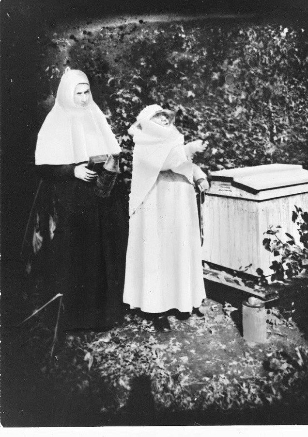 Матушка Алипия, как знали ее в монастыре – схиму она приняла уже в изгнании, – по свидетельству архивных данных, родилась в 1869 году в Ставрополе, происходила из черкесской семьи, рано осиротела. В юных летах она поступила в новооткрытый Бодбийский монастырь в Грузии, где заведовала живописной и чеканной мастерской, обучая молодых послушниц искусству иконописания. Вероятно, благодаря своему художественному таланту она получила в монашеском постриге имя первого русского иконописца преподобного Алипия Печерского. В Бодбийском монастыре она близко сошлась и духовно сдружилась со своей ровесницей монахиней Ювеналией (Марджинашвили), ныне прославленной Православной Церковью как преподобноисповедница схиигуменя Фамарь (Марджанова). Матушка Ювеналия вскоре стала игуменией Бодбийской обители, а в 1905 году указом Святейшего Синода переведена в Москву и назначена настоятельницей Владычне-Покровской женской общины милосердия. Вскоре по ее просьбе из Грузии вызывают монахиню Алипию, получившую должность казначеи Покровской общины. Это было грандиозное учреждение, территория которого занимала не один гектар земли; в его попечении находились несколько больниц, военный госпиталь, амбулатория, аптека, богадельня детский приют, общеобразовательная и фельдшерская школы, рукодельные мастерские, даже плантация тутовых деревьев с шелковичными червями при школе шелководства. В должности казначеи монахиня Алипия помогала и в строительстве Серафимо-Знаменскоо скита. В 1917 году ее направили настоятельницей во вновь образованную общину в Троице-Лыкове, однако уже на следующий год переводят игуменией в овдовевший Аносин Борисоглебский монастырь. На плечи матушки Алипии легли нелегкие заботы о сохранении монашеского уклада в условиях антицерковной политики властей. Не забывала она и своих духовных друзей, поддерживала схиигумению Фамарь в ссылке, после закрытия Серафимо-Знаменского скита многих сестер приняла в Аносино, здесь же нашел приют и гонимый властями епископ Дмитровский Серафим (Звездинский). В эти годы Аносино стало значимым центром духовной жизни, куда направляли своих чад известные духовники, среди которых московские старцы протоиерей Алексий Мечев и архимандрит Геогрий (Лавров), здесь находили утешение и вдохновение представители церковной интеллигенции как, например, А.Ф. Лосев или С. Мансуров, именно в Аносине написавший значительную часть «Очерков из истории Церкви» и благодаря опеке матшки игумении принявший священный сан.