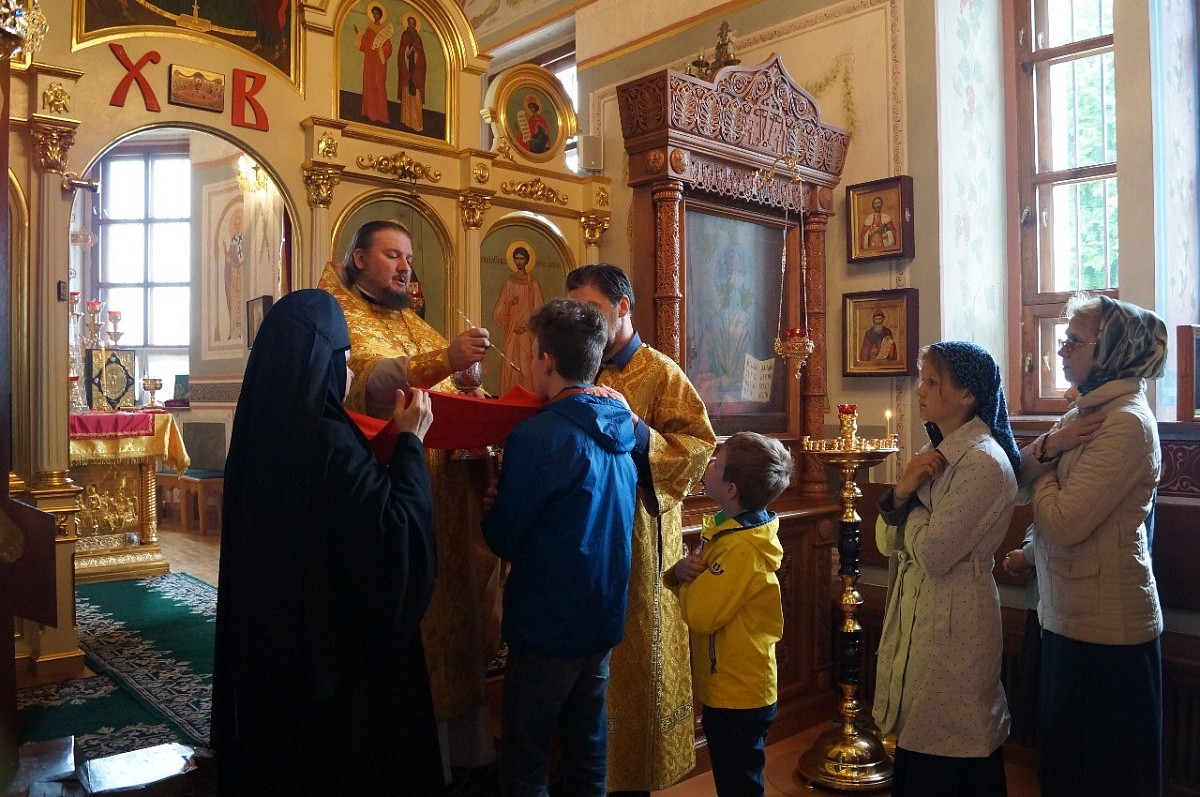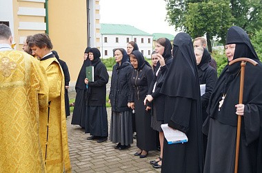 Несмотря на несколько стесненное из-за продолжающихся работ по росписи храма пространство, многочисленные прихожане и гости обители молились за богослужением с настоятельницей монастыря игуменией Марией (Солодовниковой), сестрами и монастырским духовенством.