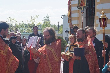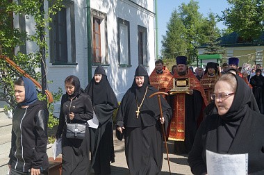По окончании богослужения священнослужители в сопровождении игумении Марии с сестрами, прихожанами и паломниками обители прошли крестным ходом с пением пасхальных песнопений, чтением Евангелия и призыванием помощи Божией по молитвам Небесных покровителей обители благоверных князей и страстотерпцев Бориса и Глеба.