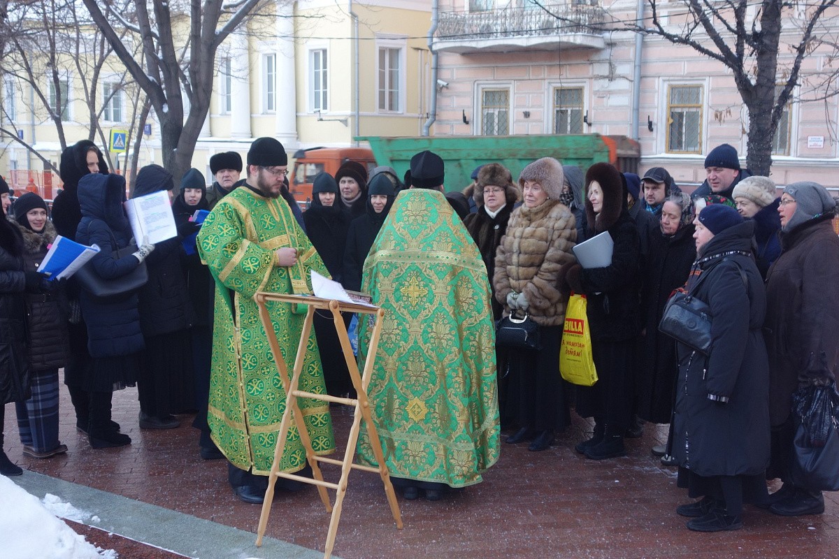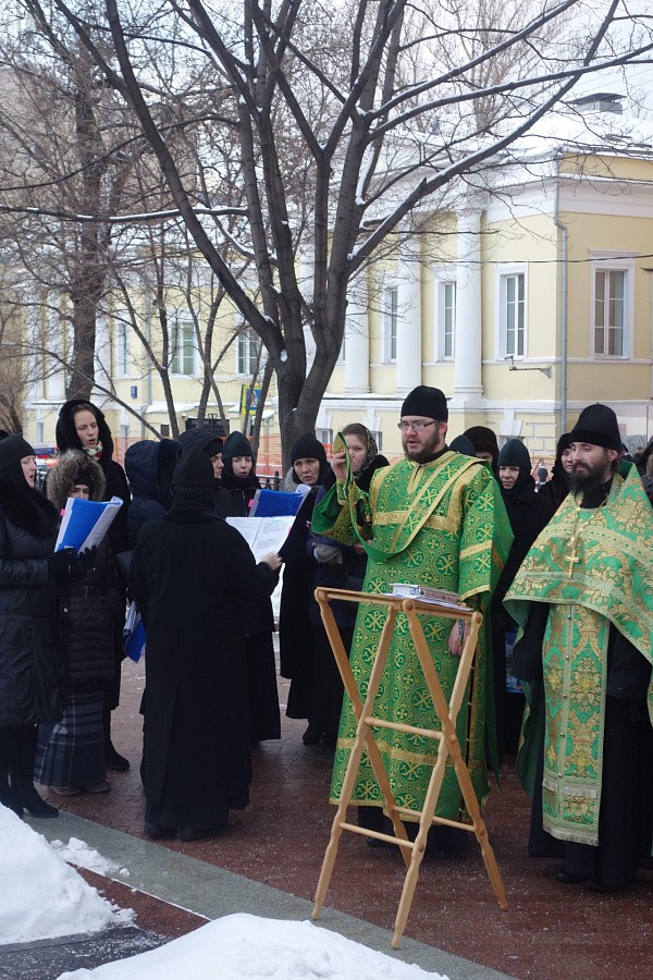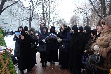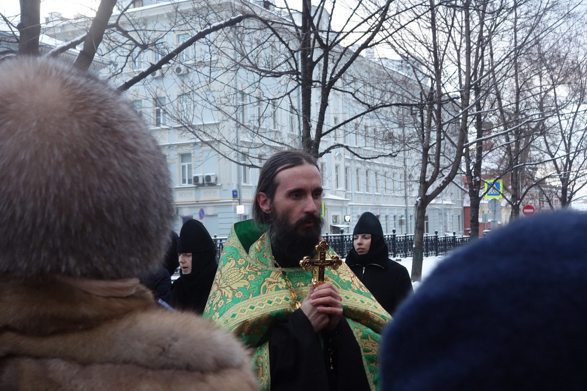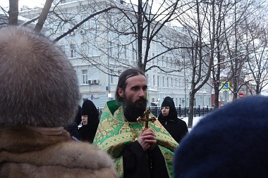 В 15.00 у памятного креста на Рождественском бульваре, рядом с монастырем, начался молебен преподобной Евдокии (Евфросинии) Московской. Молебен отслужил настоятель храма Преподобной Евфросинии Московской иеромонах Клавдиан (Сафонов).