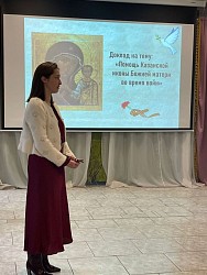 Мероприятие разделилось на 2 части. Открыла концерт Мария Куприна с докладом «Помощь иконы Божией Матери "Казанская" во время войн».