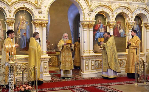 По благословению Святейшего Патриарха Московского и всея Руси Кирилла, богослужение и торжества возглавил председатель Синодального отдела по монастырям и монашеству, наместник Донского ставропигиального мужского монастыря митрополит Каширский Феогност. Его Высокопреосвященству сослужили заместитель председателя Синодального отдела по монастырям и монашеству наместник Саввино-Сторожевского ставропигиального мужского монастыря архимандрит Стефан (Тараканов) и духовенство обители.