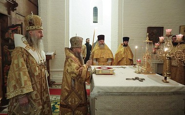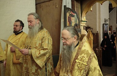 Его Высокопреосвященству сослужили: епископ Солнечногорский Алексий, наместник Данилова ставропигиального мужского монастыря; заместитель председателя Синодального отдела по монастырям и монашеству, настоятель Московского подворья Свято-Троицкой Сергиевой лавры архимандрит Стефан (Тараканов); духовенство обители.