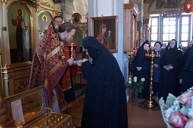 В этот день в приделе Святых благоверных князей Бориса и Глеба Троицкого собора обители была отслужена Божественная литургия, за которой вместе с матушкой игуменией молились и приступили к Святым Христовым Таинам насельницы, трудники, прихожане и паломники обители.