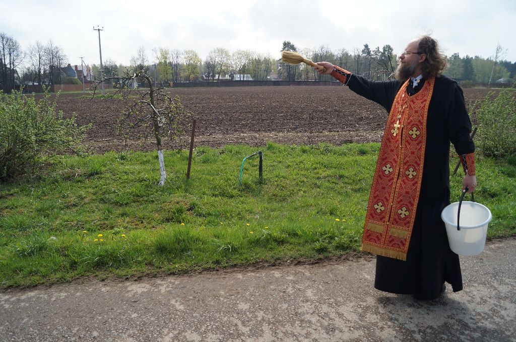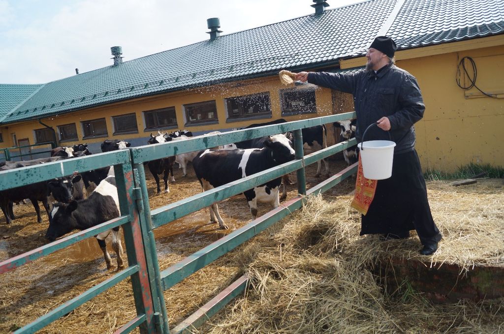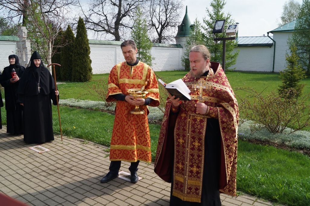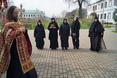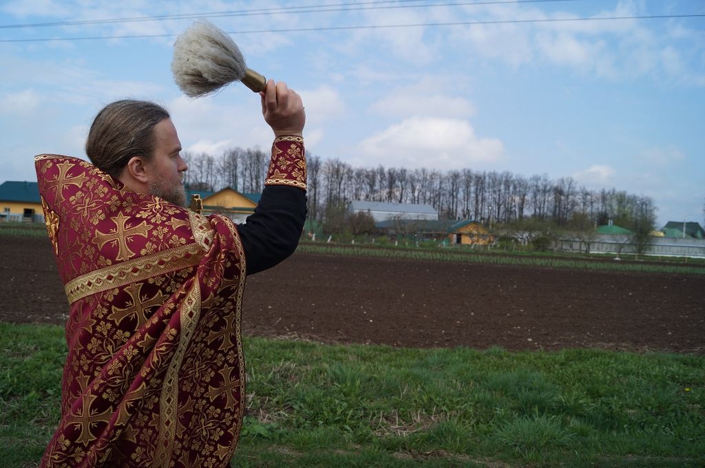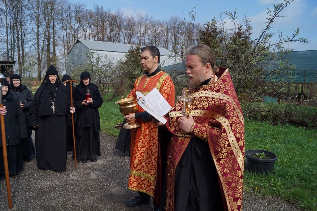 Под колокольный перезвон крестным ходом священнослужители и насельницы обители с молитвенным пением и чтением молитв обошли монастырские угодья: поля, огороды, теплицы, пасеку и монастырский сад, монастырское стадо коров и обитательниц курятника. Поля и животные были окроплены святой водой с молитвой о даровании земле плодородия, животным – здоровья и плодовитости, а также об избавлении от вредителей и стихийных бедствий.