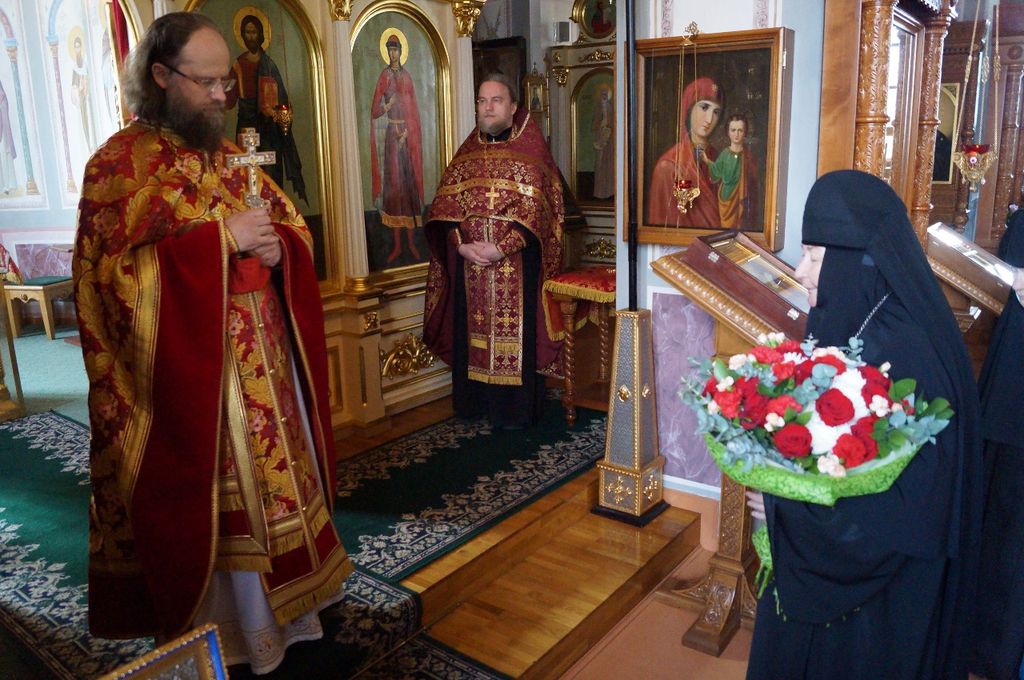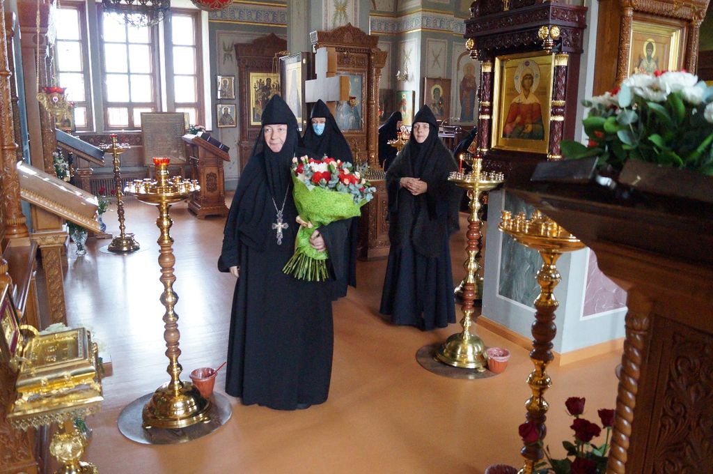От лица сестер и прихожан, не имевших возможности присутствовать на богослужении в этот праздничный день, тезоименитого пастыря поздравила с благодарностью и искренними пожеланиями настоятельница обители игумения Мария (Солодовникова). Преподнеся батюшке букет цветов, матушка игумения напомнила также о подвиге великомученика Георгия и тех испытаниях, что пришлось ему претерпеть в свое время, и который сейчас своим подвигом укрепляет и воодушевляет нас терпеливо и с благодарностью нести свой жизненный крест, уверяя, что даже в тяжелых испытаниях мы не одни, что мы с Богом, поэтому мы молитвенно просим и сердечно предстоим за всех тех, кто нуждается в поддержке и утешении в это непростое для нас время.