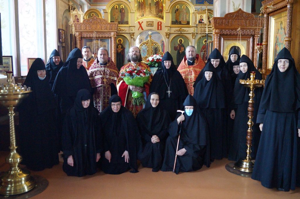 От лица духовенства именинника поздравил старший священник обители иеромонах Адриан (Чаликов), преподнеся в знак молитвенного братского предстательства о нем у Престола Божия богослужебную просфору со словами наилучших пожеланий духовного воодушевления, еще большей ревности о Господе в его служении и дальнейшему развитию талантов на благо Церкви Христовой. Также батюшка пожелал собрату «на все дни побеждать, приносить с помощью Божией победу в свою душу и в души тех пасомых, кто своим доверием вручает себя его пастырскому попечению, чтобы от этой победы благодатию Божией рождалась истинная радость, которая, распространяясь за пределы нашей обители посредством общих трудов духовенства обители, матушки игумении с сестрами, исполняла бы слова Писания “с преподобным преподобен будеши…“, чтобы даже люди, далекие от церкви, увидели Свет Христова благовествования через нас, пусть несовершенных, но благодатию Божиею укрепляемых».