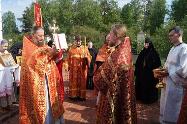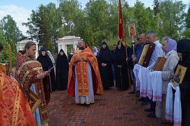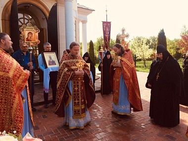 По заамвонной молитве священнослужители обители, настоятельница монастыря игумения Мария (Солодовникова) с сестрами, прихожане и паломники торжественно обошли храм-именинник крестным ходом под пение пасхальных песнопений с хоругвями, иконами, чтением Святого Евангелия и окроплением святой водой всех присутствовавших.