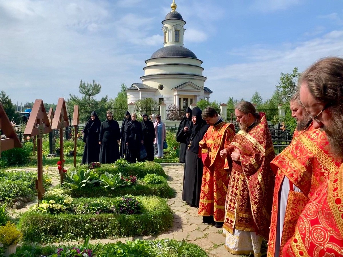 Затем была соборно совершена заупокойная лития на могиле приснопоминаемых Тамары и Олега, в память которых был построен храм святой царицы Тамары тщанием и помощью их благодарных наследников, после чего насельницы и священнослужители обители помолились о почивших приснопоминаемых сестрах Аносиной пустыни.
