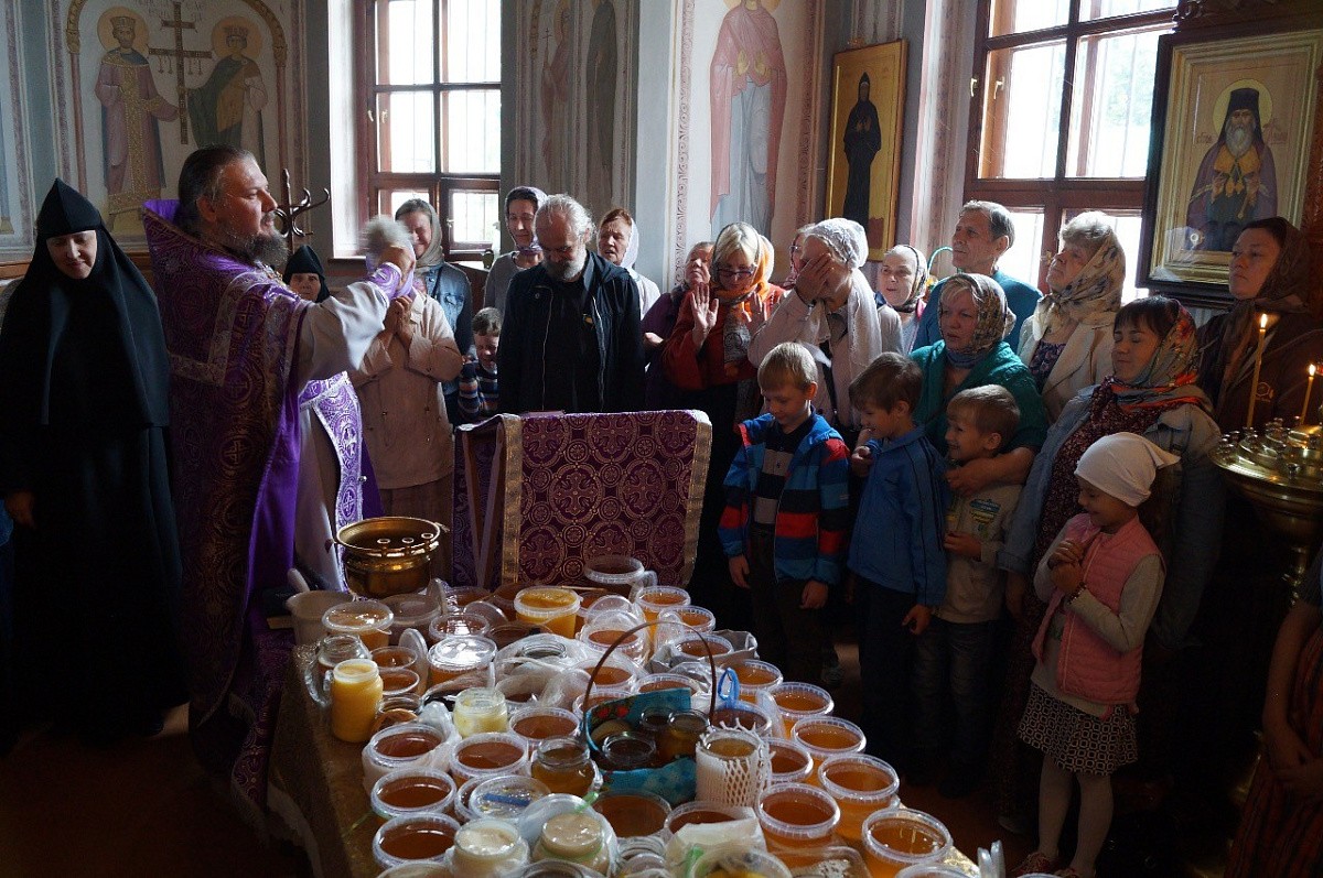 В сам день праздника после совершения праздничной Божественной литургии состоялся молебен с водосвятием и освящением молодого меда нового сбора с монастырской пасеки, а также принесенного всеми желающими для благословения и освящения.