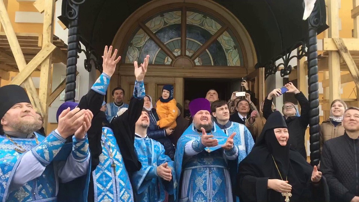 По окончании поздней Божественной литургии возле Троицкого собора обители настоятельница, духовенство, насельницы, прихожане и паломники монастыря по сложившейся традиции совместно выпустили на волю белых голубей.