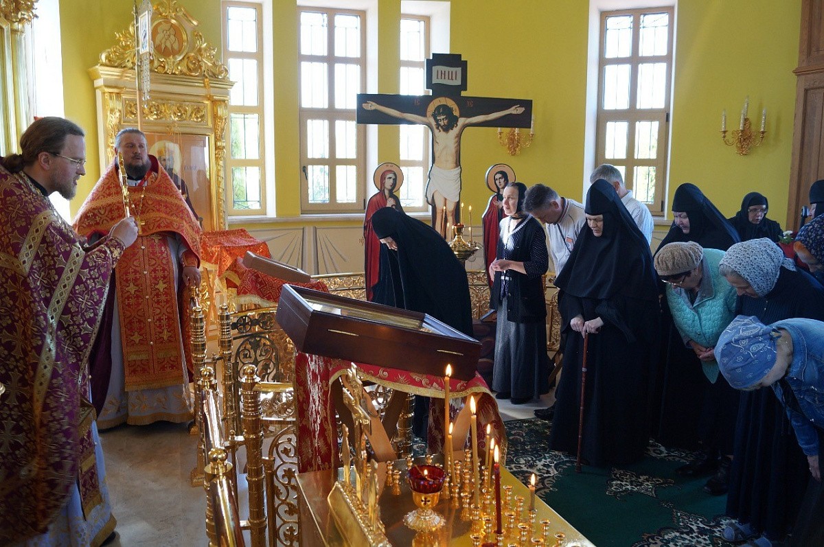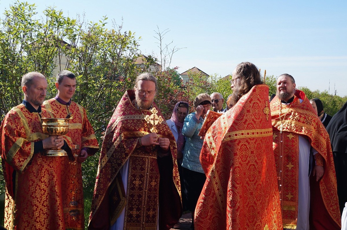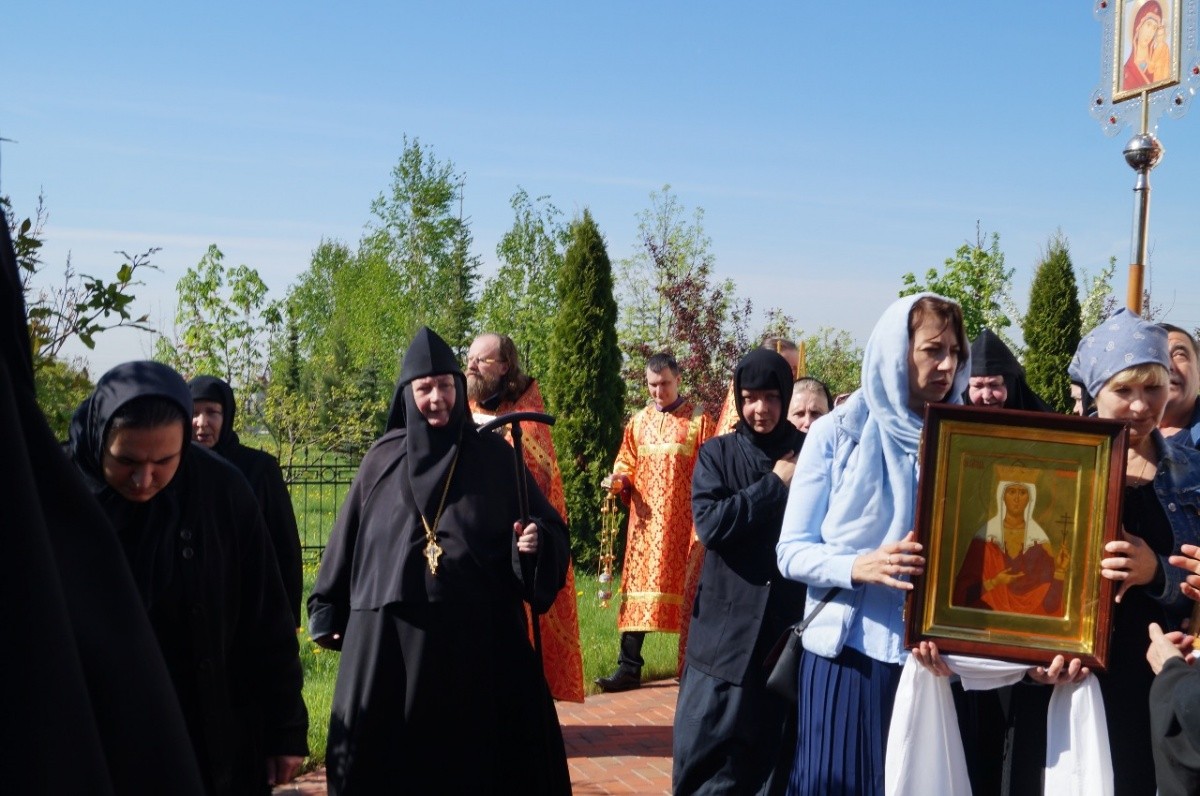 По заамвонной молитве священнослужители, настоятельница монастыря игумения Мария (Солодовникова) с сестрами, прихожане и паломники обители торжественно обошли храм-именинник крестным ходом с хоругвями и иконами с чтением Евангелия, молитвенным призыванием помощи святых и окроплением святой водой.