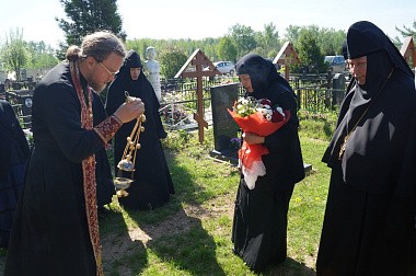 В завершение была соборно отслужена заупокойная лития у могил почивших сестер обители, после чего все присутствующие были приглашены на праздничный обед.