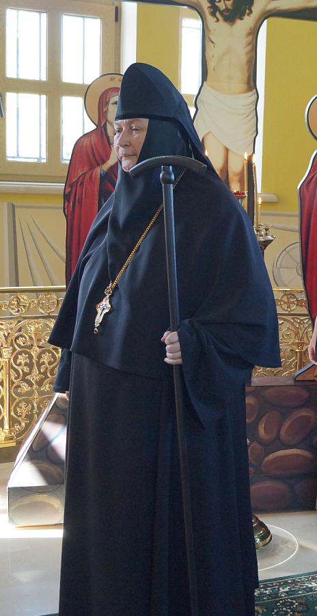 По окончании крестного хода была прочитана молитва ко святой праведной царице Тамаре, после чего от лица духовенства старший священник монастыря иеромонах Адриан (Чаликов) поздравил игумению Марию с престольным праздником, преподнеся в дар символ молитвенного предстояния пред Престолом Божиим за духовное сестричество, богослужебную праздничную просфору.
