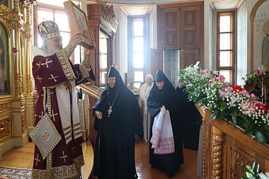 Затем митрополит Феогност поздравил всех собравшихся с престольным праздником монастыря.